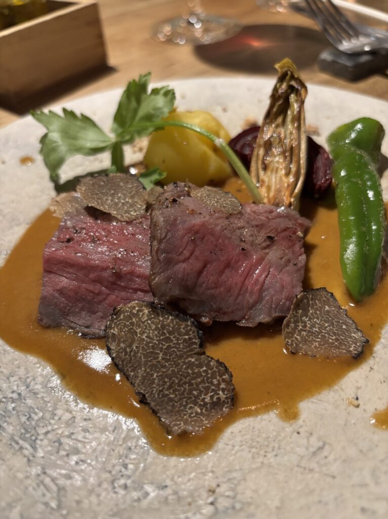 オーナーシェフの野田さんは、「幸せが生まれる場所であるように」との願いを胸に、日々キッチンに立つ。フランス料理の枠にとらわれず、地元産の野菜や魚、肉を使いながら、その時々の季節が持つ美しさと、素材が持つ生命力を皿の上に映し出す。「忙しい日常から少し離れて、心も身体もほっとできる場所にしたいんです」と野田さん。Hitotsuでは、旬の食材を生かした身体に優しいコース料理を中心に、アラカルトメニューの用意もある。ペアリングには、こだわり抜いたワインが並ぶ。