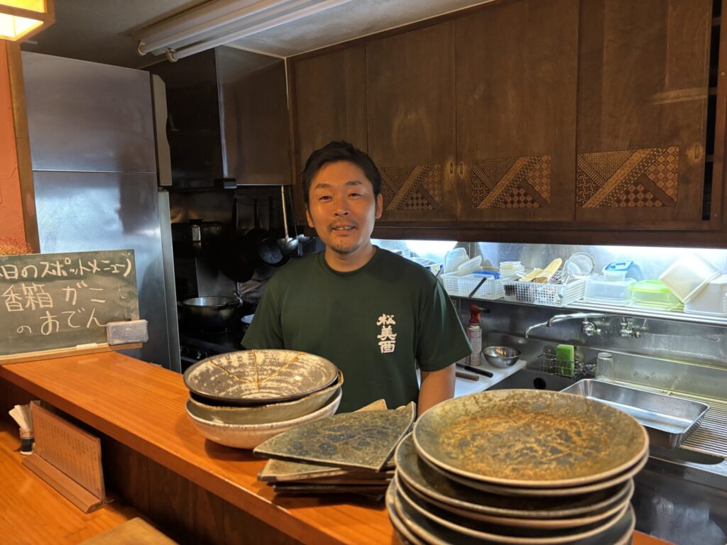 料理を任されているのは、信頼厚い板長の栗林さん。日本酒に寄り添うための料理を探求し、季節の走りを取り入れた一皿はどれも評判が良い。「栗林さんがいてくれるから、私は安心してお酒に集中できるんです」と志保さんは微笑む。