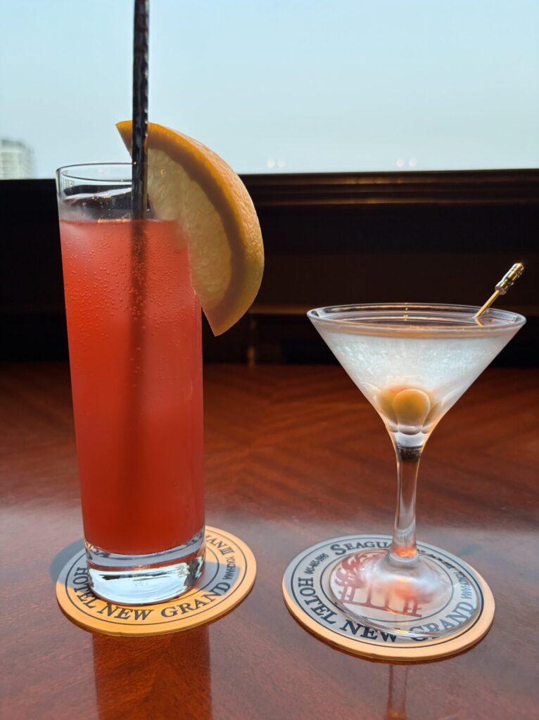 2杯目のグラスを傾けながら窓の外を見る。遠くに見える港の光と高層マンションの灯りが重なる。震災から復興した街に生まれ、海とともに歩んできたバーの時間が、この夜の静けさの中に確かに続いている。もう一口飲み、グラスを置く。ここは百貨店の中のバーでありながら、確かに横浜港につながっている。そんな不思議な感覚を胸に、ゆっくりと夜を味わった。