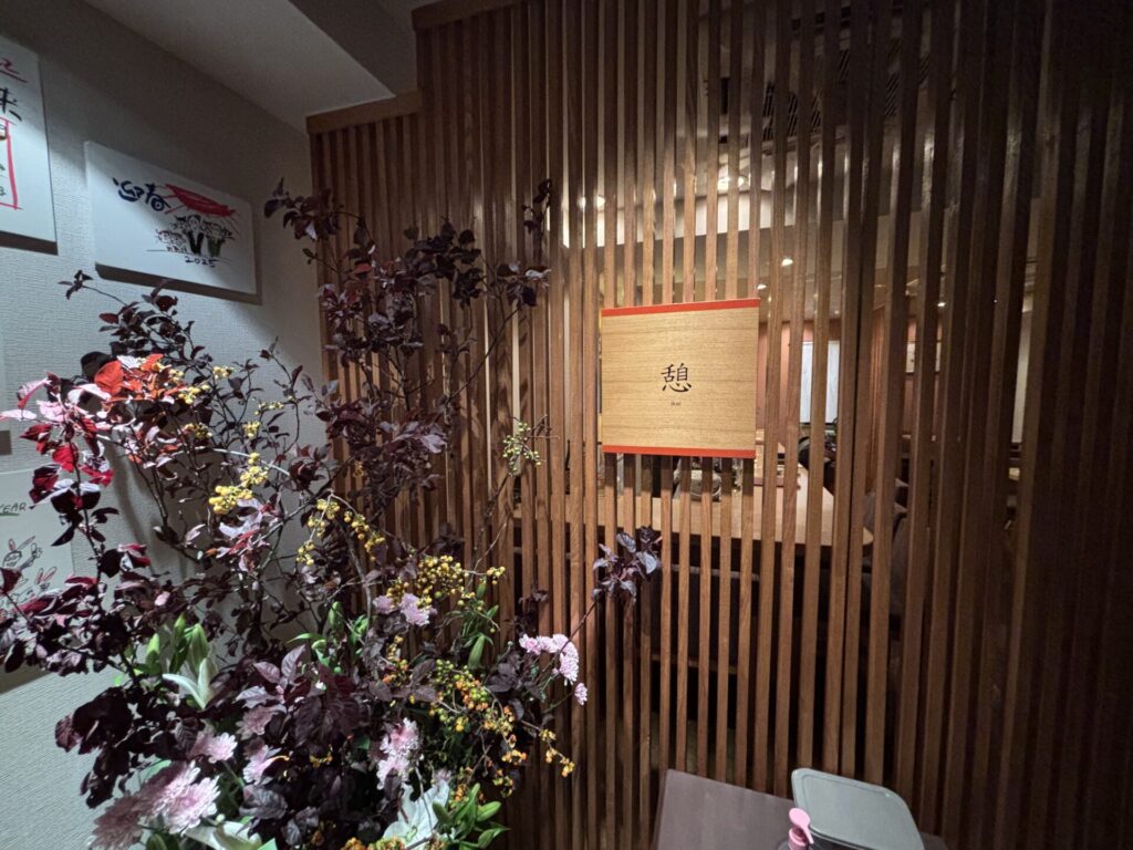 銀座8丁目のソニー通りビルの2階、エレベーターを降りると豪華なお花が迎えてくれる。やはり銀座は華やかな場所だ。和酒処「憩 -ikoi-」。その名のとおり、この店は訪れる人に“憩いの時間”を届けてくれる。